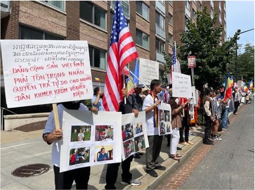 Người Khmer Krom biểu tình trước Đại sứ quán Việt Nam ở Washington DC hôm 21/8/2023 - Photo : RFA