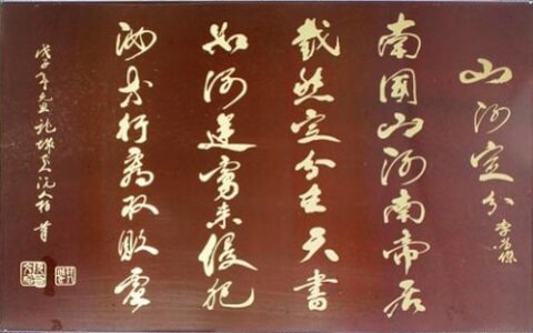 Bản thư pháp chữ Hán của bài thơ thần "Nam quốc sơn hà" - bài thơ được coi là bản Tuyên ngôn Độc lập đầu tiên của dân tộc Việt Nam. Ảnh : vannghecuocsong.