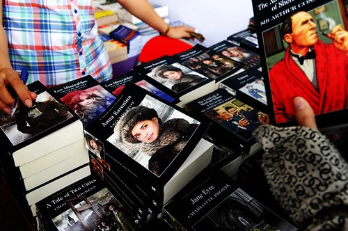 Hình minh họa. Một người khách đang xem những cuốn sách của một nhà xuất bản tại một hội chợ sách ở Hà Nội hôm 11/9/2015 AFP