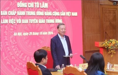 Tổng bí thư Đảng cộng sản Việt Nam Tô Lâm họp với Ban Tuyên giáo Trung ương của đảng hôm 29/10, Dân Trí, Thanh Niên và nhiều báo mạng khác cho hay.