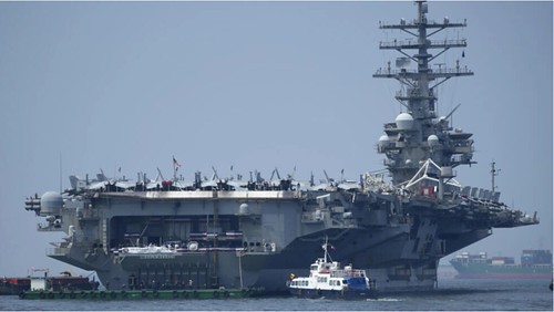 Hàng không mẫu hạm USS Ronald Reagan trong chuyến ghé thăm cảng Manila, Philippines ngày 14/10/2022. AP - Aaron Favila