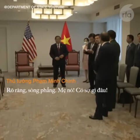 Ngày 13/5/2022, một clip video bỗng chốc trở nên "vai-rô" trên khắp các mạng xã hội. "Rõ ràng, sòng phẳng ! Mẹ nó ! Sợ gì !". Phát biểu đầy "khí thế" của ông Phạm Minh Chính - thủ tướng nhà nước Việt Nam cộng sản trước cuộc gặp gỡ Ngoại trưởng Antony Blinken - được phát ra từ trang YouTube của Bộ Ngoại giao Hoa Kỳ.