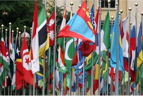 Cờ của nhiều quốc gia được treo trước Văn phòng Liên Hợp Quốc vào ngày 8/6/2008 tại Geneva, Thụy Sĩ. ẢNH Johannes Simon / Getty