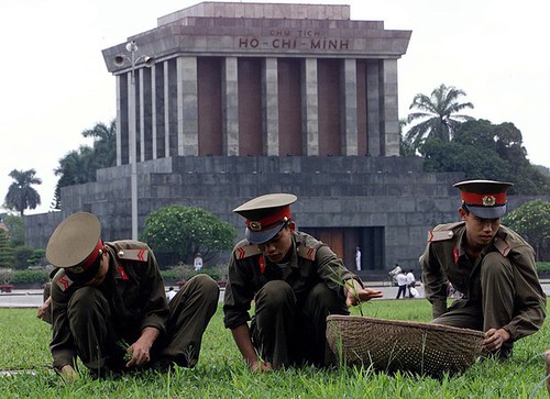 Lực lượng trông coi lăng ông Hồ Chí Minh dọn cỏ trước lăng. Ảnh minh họa chụp trước đây. A FP PHOTO