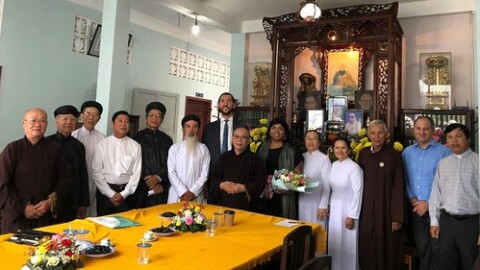 Đại diện Hội đồng Liên Tôn Việt Nam vào sáng ngày 18/09/2019 có cuộc gặp với Đoàn Ủy ban Tự do Tôn giáo Quốc tế của Hoa Kỳ (USCIRF) tại Chùa Giác Hoa, Sài Gòn. Courtesy FB Linh mục Paul Lộc