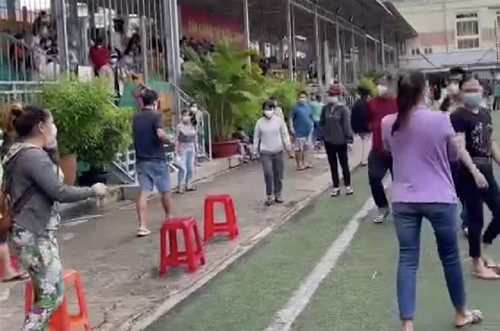 Nhiều người dân bất bình bỏ về sau khi nghe thông báo chích vaccine Sinopharm tại sân bóng Tao Đàn, quận 1, Sài Gòn. (Hình chụp qua màn hình)