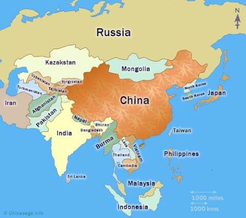Vị trí A Phú Hãn (Afghanistan) trong vùng Nam Á và Châu Á