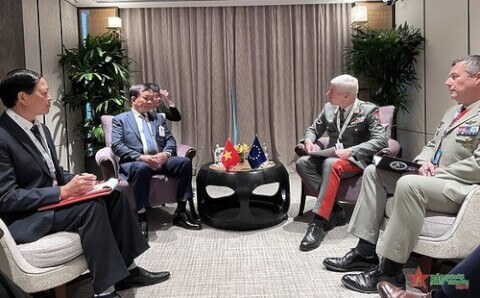 Thứ trưởng Bộ Quốc phòng Việt Nam Thượng tướng Hoàng Xuân Chiến gặp Đại tướng Robert Brieger, Chủ tịch Ủy ban Quân sự EU tại Đối thoại Shangri-la 2023 - Bộ Quốc phòng Việt Nam
