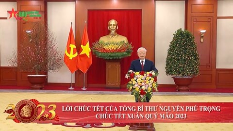 Ông Nguyễn Phú Trọng như hồi ‘kế nhiệm’ chủ tịch nước Trần Đại Quang đọc diễn văn chúc Tết đồng bào năm Quý Mão.