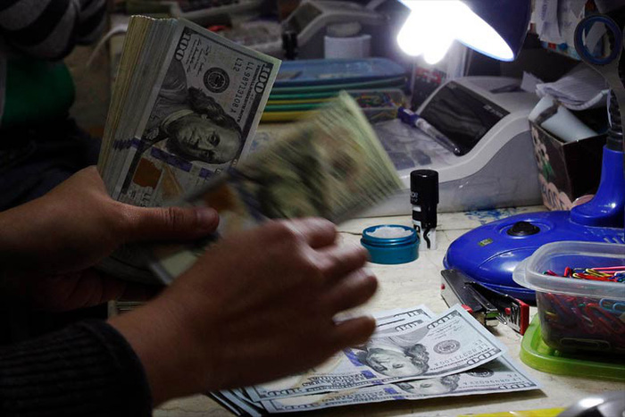 Nhân viên ngân hàng Việt Nam đếm đô la Mỹ trong một giao dịch