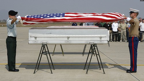 Một buổi lễ hồi hươ ng hài c ốt quân nhân Mỹ.
