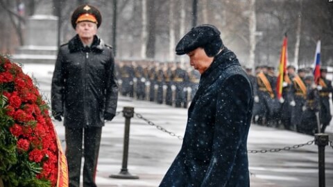 Chủ tịch nước Việt Nam Nguyễn Xuân Phúc đặt vòng hoa trước Mộ các Chiến sĩ Vô danh ở Moscow, Nga, trong chuyến công du chính thức tới nước ngày hôm 1/12/2021.