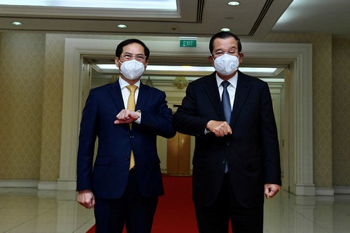 Bộ trưởng Ngoại giao Việt Nam Bùi Thanh Sơn và Thủ tướng Campuchia Hun Sen ở Phnom Penh hôm 20/1/2022 - Reuters