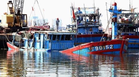 Một chiếc tàu đánh cá của ngư dân Việt Nam bị tàu Trung Quốc đâm chìm trên biển Đông. (Hình : Getty Images)