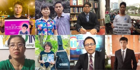 Các tù nhân và bị can chính trị ở Việt Nam, hàng trên bên trái : Do Nam Trung, Can Thi Theu and Trinh Ba Tu, Le Trong Hung, Trinh Ba Phuong ; hàng dưới bên trái : Nguyen Thi Tam, Pham Doan Trang, Pham Chi Thanh, Le Van Dung, Bui Van Thuan. © 2022 Private