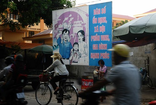 Bức tranh cổ động người dân chỉ nên hai con là đủ, ảnh chụp tại Hà Nội ngày 21 tháng 10 năm 2014. Photo : AFP