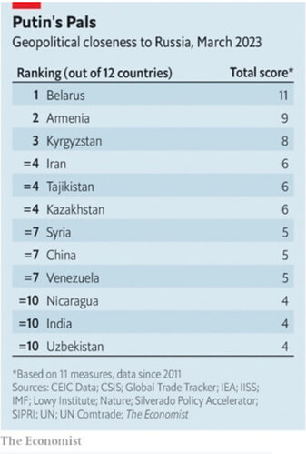 Việt Nam không nằm trong số 12 nước thân thiết nhất với Nga, theo The Economist, 14/3/2023.