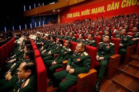 Các đại biểu là các sĩ quan quân đội cấp cao dự Đại hội 12 Đảng cộng sản Việt Nam ở Hà Nội hôm 28/1/2016 - AFP
