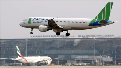 Các hãng hàng không Việt Nam dự trù mở lại các chuyến bay quốc tế kể từ tháng 09/2021. Trong ảnh : Một chiếc Airbus của Bamboo Airways đáp xuống sân bay quốc tế Nội Bài ngày 18/04/2019. Reuters - Nguyen Huy Kham