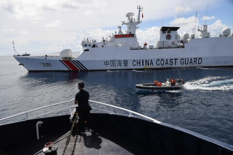 Tàu hải cảnh Trung Quốc chặn tàu của Philippines ở gần bãi Scarborough hôm 22/9/2023 - AFP