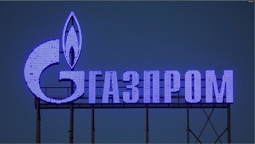 Logo của tập đoàn năng lượng Gazprom của Nga tại Saint Petersburg. Gazprom là một trong những công ty chủ chốt của Nga thực hiện các dự án hợp tác tiềm năng mới về khí đốt giữa Nga và Việt Nam.