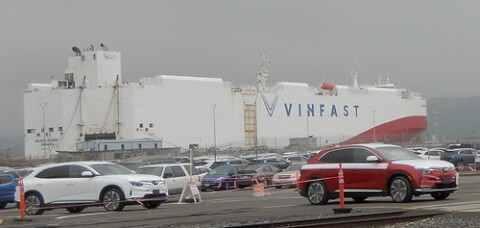 Ngày 19 tháng 12 năm ngoái, 999 xe VinFast VF8 đầu tiên dành cho khách hàng đã vào đến Mỹ qua bến cảng Benicia ở miền bắc California và được công ti chào đón với nghi lễ tại cửa tầu, tuy không ấn tượng bằng lúc những xe này rời cảng Hải Phòng ba tuần trước đó.