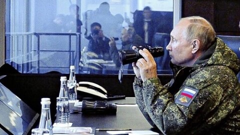 Tổng thống Nga Vladimir Putin quan sát cuộc tập trận Vostok 2022 tại vùng Viễn Đông, ngày 06/09/2022. AP - Mikhail Klimentyev
