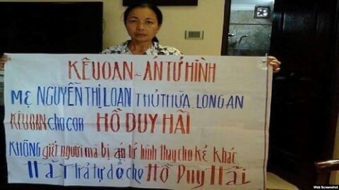 Trang Kiểm Sát Online của Viện Kiểm sát nhân dân tối cao hôm 05/05/2020 đăng hình bà Nguyễn Thị Loan, mẹ của tử tù Hồ Duy Hải liên tục kêu oan cho con. Photo Kiem Sat online.