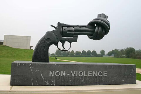 Tác phẩm điêu khắc "Khẩu súng thắt nút" (Phi bạo lực) của Carl Fredrik Reuterswärd