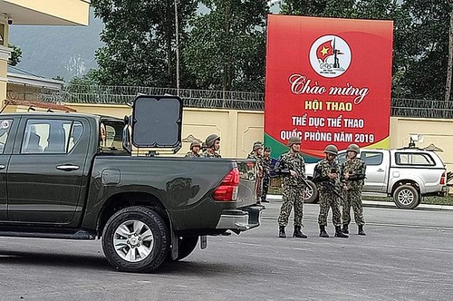 Lực lượng công an huyện Diễn Châu, Nghệ An đã dùng thiết bị lạ phát ra âm thanh cực lớn để ngăn cản giáo dân tiếp cận trụ sở công an hồi tháng 5 năm 2017. Citizen photo