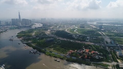Khu Đô thị mới Thủ Thiêm bên bờ sông Sài Gòn nhìn từ trên cao - Photo : RFA