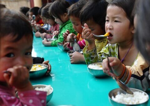 Trẻ H'mong đang ăn trưa miễn phí ở một nhà trẻ ở Mèo Vạc, Hà Giang hôm 3/4/2015 – Hoang Đình Nam / AFP