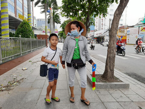 Trẻ em ở Việt Nam bị tước mất mọi thứ để quan to được giàu có - Ảnh : Hai mẹ con chị Chiến và Thuận hằng ngày mưu sinh bằng việc bán vé số - M.L./Tuổi Trẻ online 05/08/2020