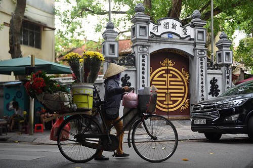 Một người bán hoa dạo ở khu phố cổ Hà Nội - AFP