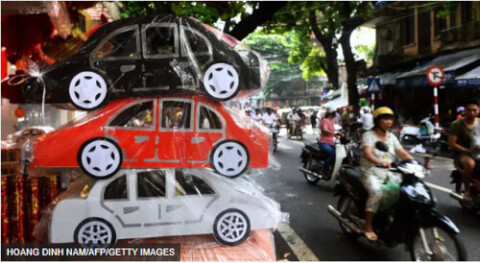Không chỉ các loại vàng mã theo phong cách truyền thống như thỏi vàng, áo binh, nhiều gia đình Việt Nam đã chọn đốt những món đồ mã với thiết kế hiện đại như nhà lầu, xe hơi đời mới, các mẫu iPhone vừa trình làng.
