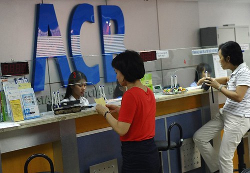 Khách hàng giao dịch tại ngân hàng ACB. Ảnh minh họa. AFP