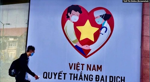 Một áp phích tuyên truyền cuộc chiến chống đại dịch Covid-19 ở Việt Nam. (Ảnh chụp màn hình Tuổi Trẻ Online)